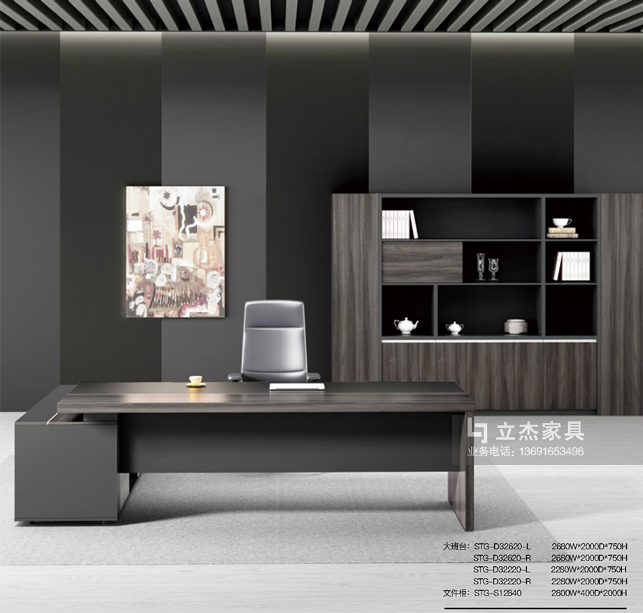首页--->行政桌组系列--->现代板式老板桌--->现代大班台主管桌[STG-D32620]